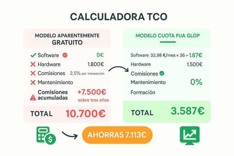 Si tu facturación mensual es inferior a 8.000€: El POS100 de Glop te dará todas las funciones esenciales con excelente soporte. ROI inmediato garantizado.