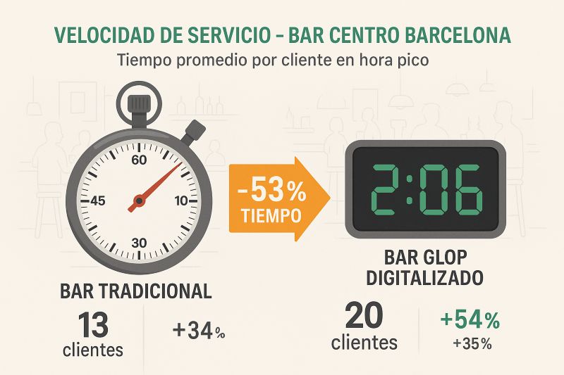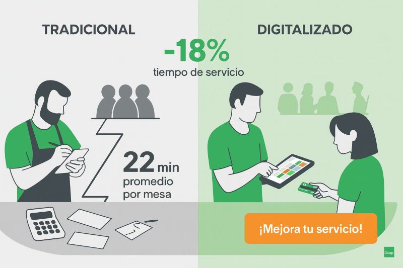 Comparativa visual – Restaurante tradicional vs digitalizado, mostrando diferencias en tiempo de servicio