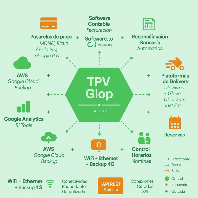 Un TPV (Terminal Punto de Venta) moderno no es solo una “caja registradora digital”. Es el centro neurálgico de tu negocio hostelero que: