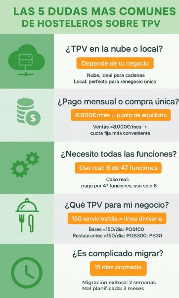 Infografía con las 5 dudas más comunes de hosteleros sobre TPV
