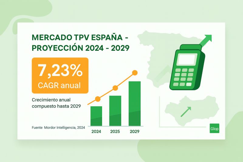 Proyección de crecimiento del mercado TPV España 2024-2029.